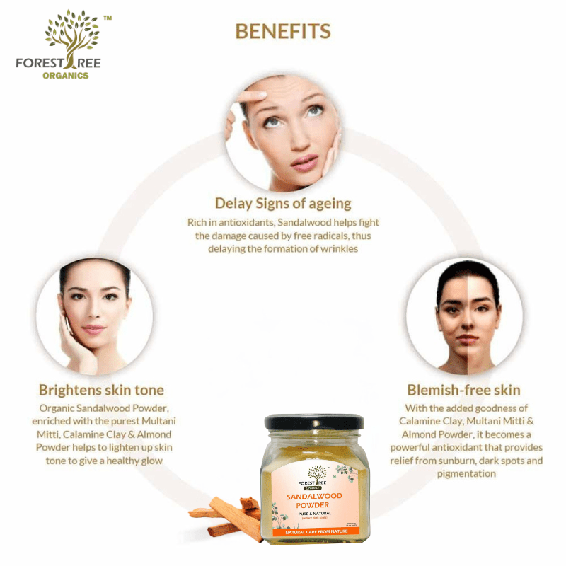 Forest Tree Organic Sandalwood Powder |  Anti-Tan & Clear Skin Cooling Formula| 100% Pure & Chemical free |